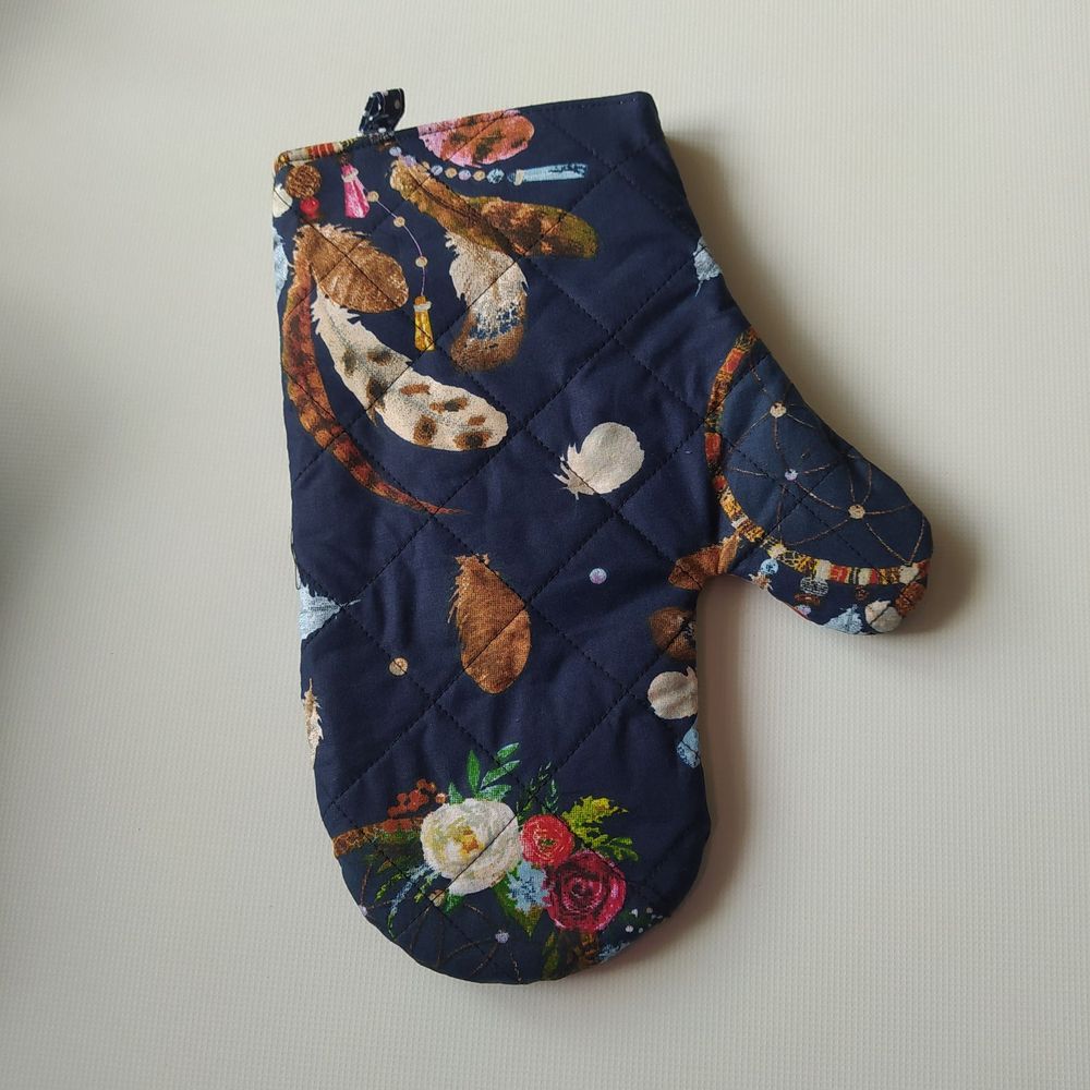 je ušita z bavlněné látky. Na délku má 27cm. Uvnitř je Termolín AL, což je hliníková folie s netkanou textilií, která má dobré tepelně-izolační vlastnosti. Chňapka má magnet i poutko. V závislosti na vzoru na látce, se může vysledný vzhled lišit