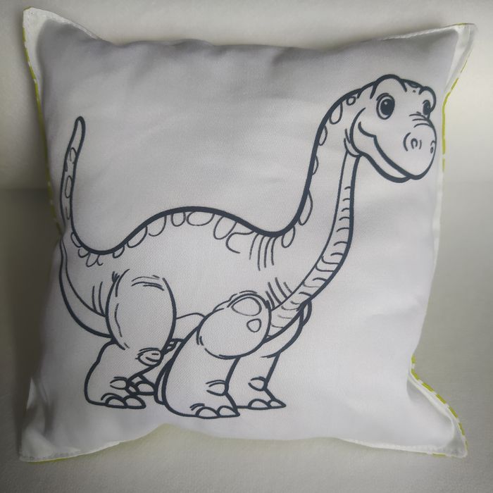 Polštářek s omalovánkou dinosaura je 20x20cm veliký a je ušit ze 100% bavlněné látky. Na přední straně je omalovánka, zadní strana je barevná bavlněná látka, která se vzorem liší dle aktuální nabídky. Polštářek je vyplněn kuličkovým dutým vláknem ( 100%polyester ),