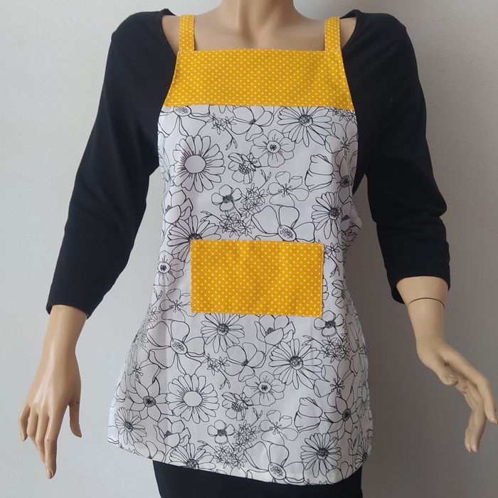 Dětská zástěra je ušitá z bavlněné látky. Celková délka zástěry je 5cm a šířka ( bez úvazků ) 44cm, délka úvazků je 45cm. Foceno na dospělé figuríně. Je ze 100% bavlny, na kterou lze malovat fixy na textil a vyrobit si tak zástěrku dle vlastní fantazie.