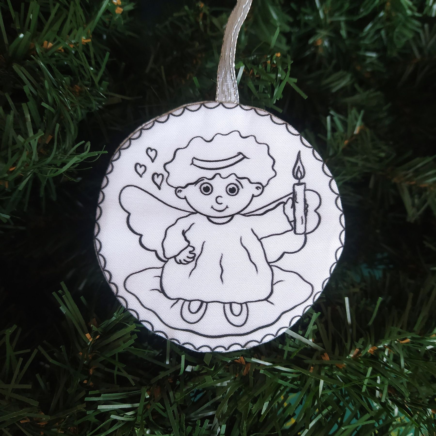Látková baňka je 9cm v průměru, ušitá z bavlněné látky s vánočním motivem od ilustrátorky Dagmar Medzvecové. Je vyztužená a je možné si ji dle své fantazie domalovat barvami, nebo fixy na textil. Vznikne vám tak originální vánoční ozdoba.
