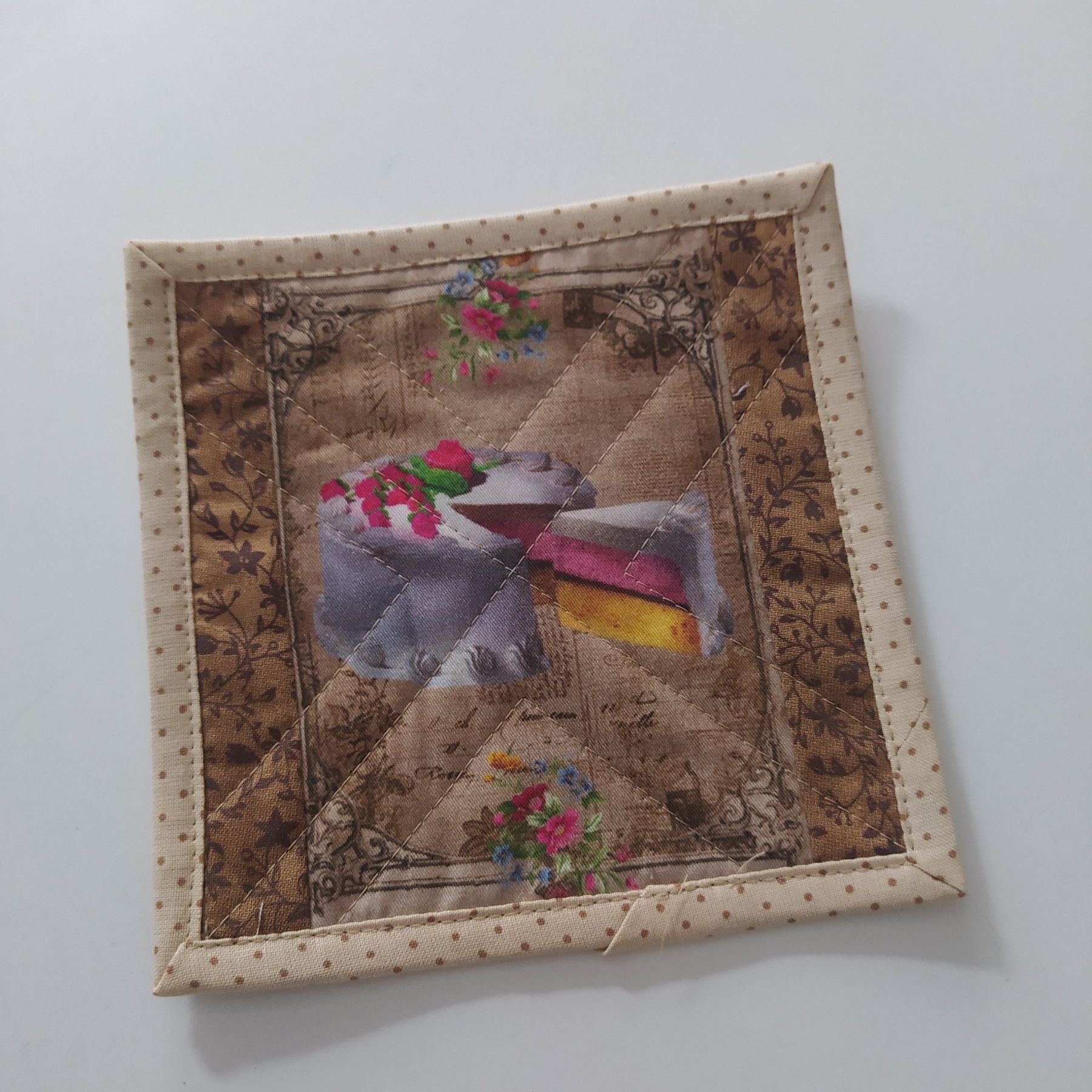 Podkafíčka jsou ušitá jsou ze 100% bavlny, vyztužená, doporučené praní na 40, žehlení na bavlnu. Velikost cca 15x15cm