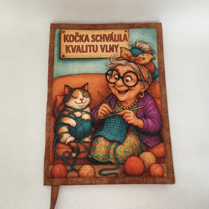 Látkový vtipný obal na knihu "Pletení" je originální, vtipný a veselý kabátek na knihu, který určitě potěší každého čtenáře, či čtenářku.
