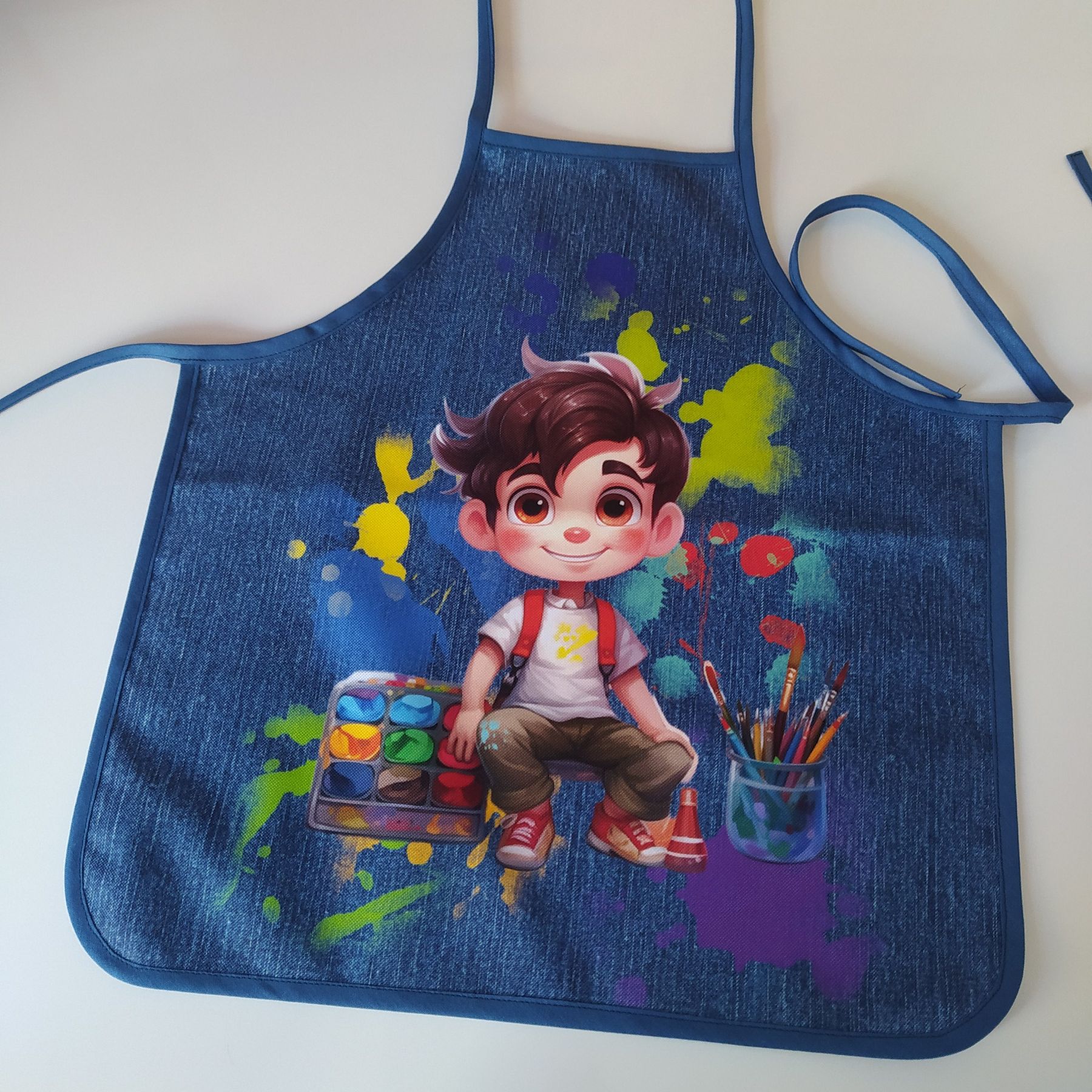 Zástěrka do školy je ušita z kočárkoviny, je možno ji otřít, případně i ručně vyprat. Zamezí zašpinění oblečení při výtvarné činnosti nejen ve škole.